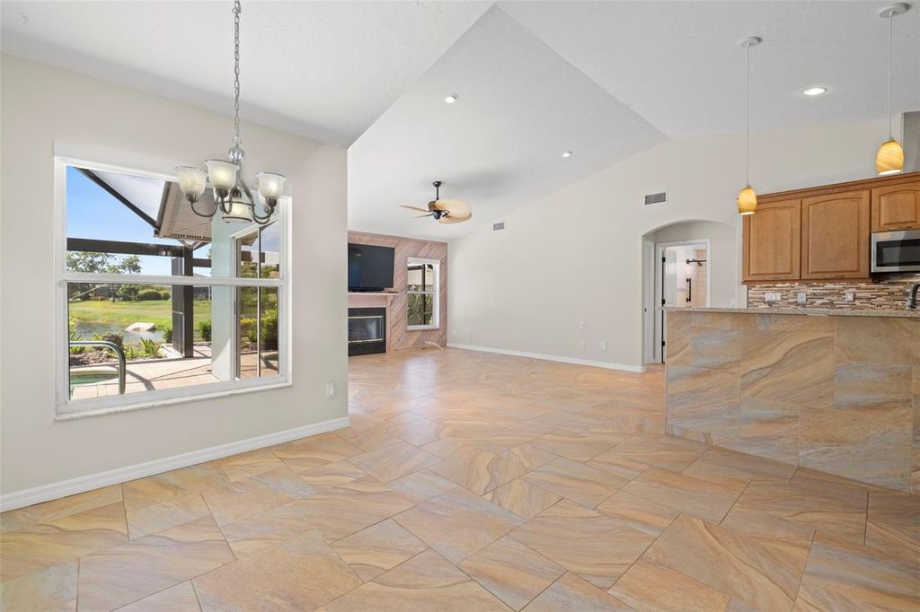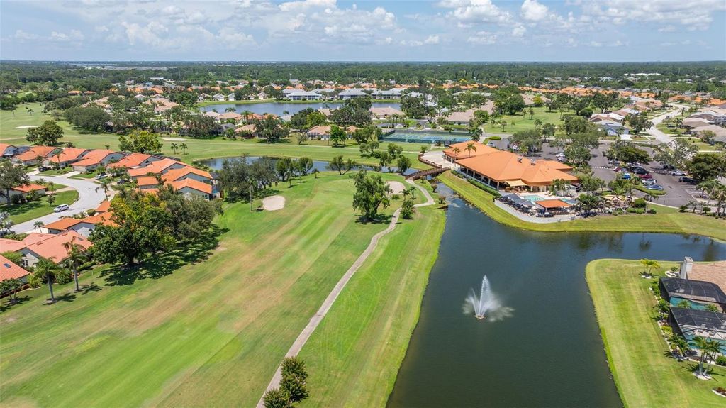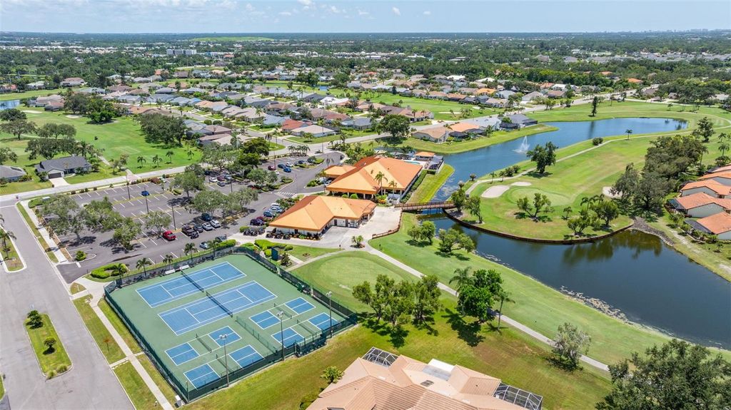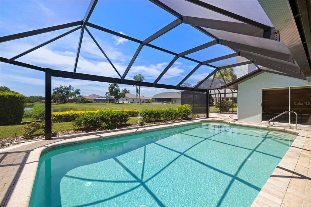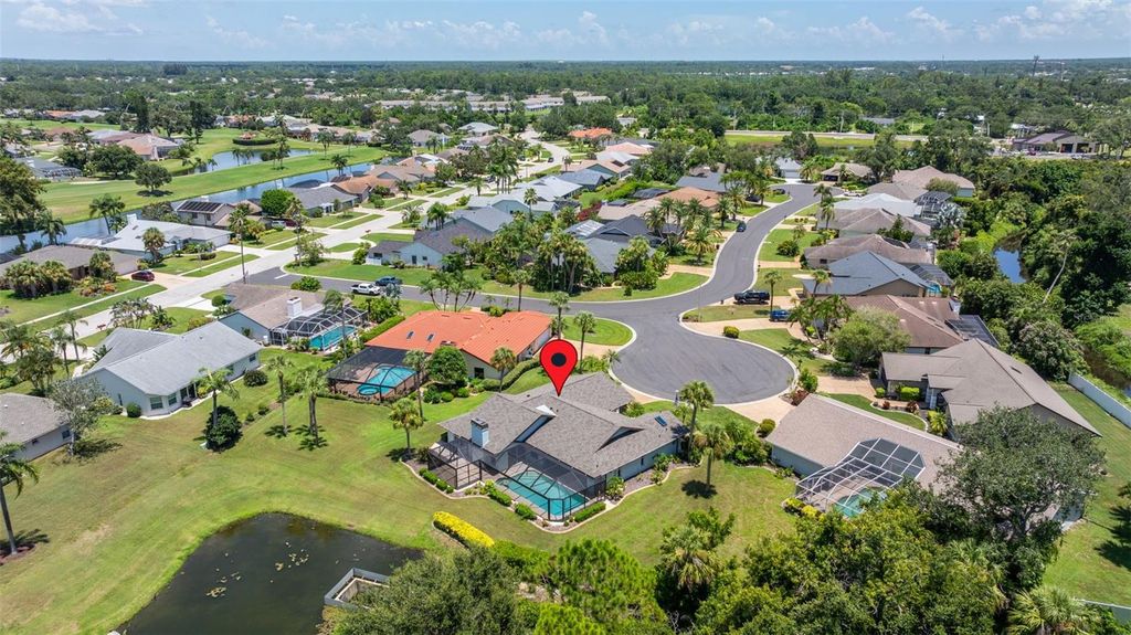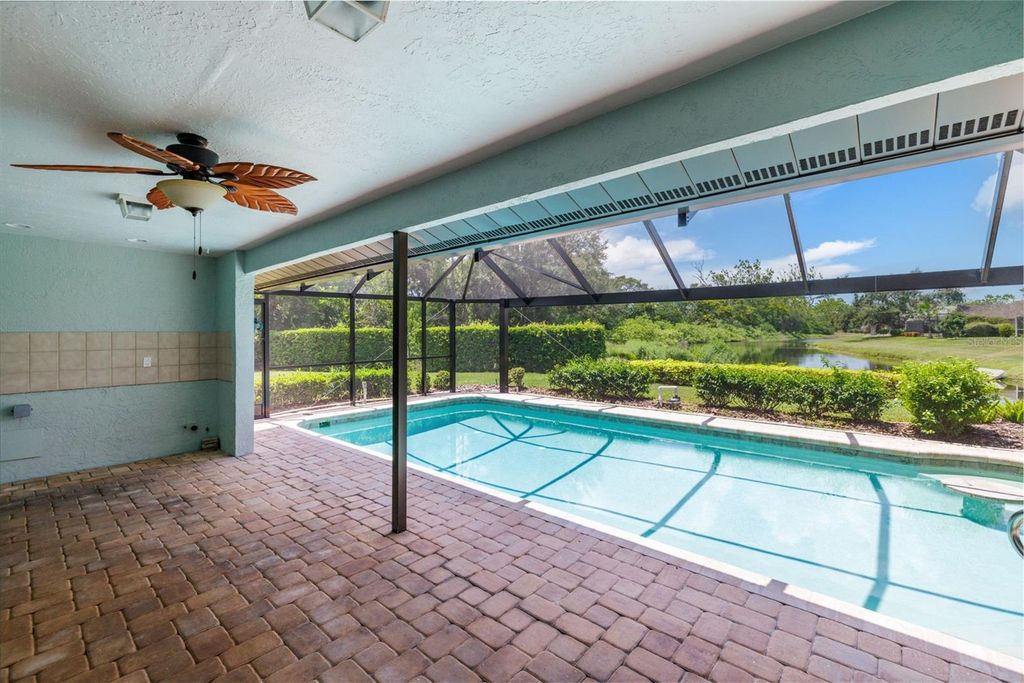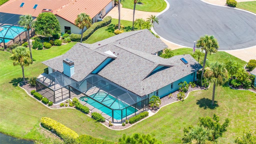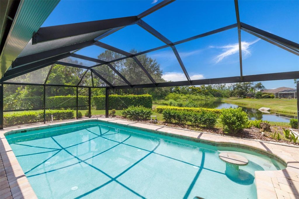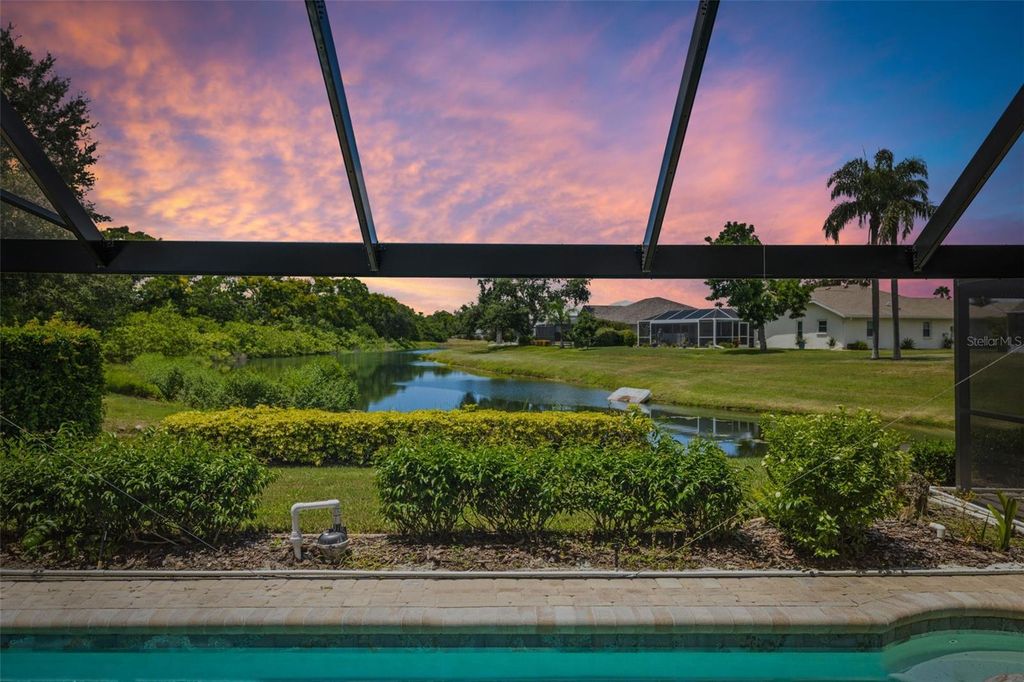 Under contract-accepting backup offers. Welcome to Peridia Golf & Country Club – where every homeowner is a golf club member! Enjoy a lifestyle filled with activities and amenities, including an 18-hole golf course, tennis and pickleball courts, an outdoor Tiki Bar, and the indoor Club Bar & Restaurant. The community also offers a variety of social clubs and events—Mah Jongg, Bingo, Bridge, and so much more. This beautiful 3-bedroom, 2-bathroom pool home is perfectly situated at the quiet southern end of the community on a peaceful cul-de-sac, boasting one of the best water views around. Step inside to discover: An amazing kitchen with new appliances. A breakfast nook where you can enjoy your morning coffee looking out over the pool and lake. Check out the brand new lanai cage with panoramic screens. A new roof was put on in 2025 for peace of mind. See the completely renovated primary bathroom featuring two separate vanities, a walk-in shower, a standalone soaking tub, and a skylight that floods the space with natural light. The split-bedroom design promotes ultimate privacy. The high ceilings enhance the feeling of openness. Out back, your western-facing water view sets the stage for unforgettable sunsets—every single day. Move in and start enjoying the resort lifestyle you deserve—sunsets included!