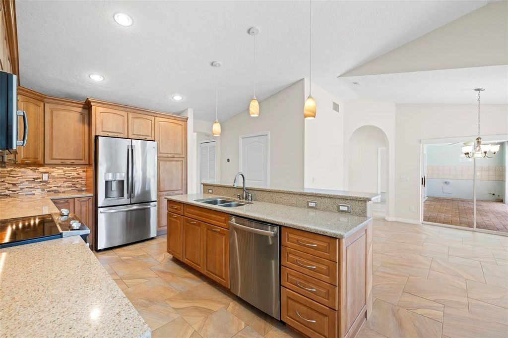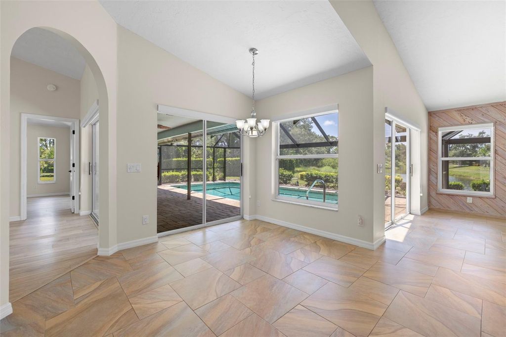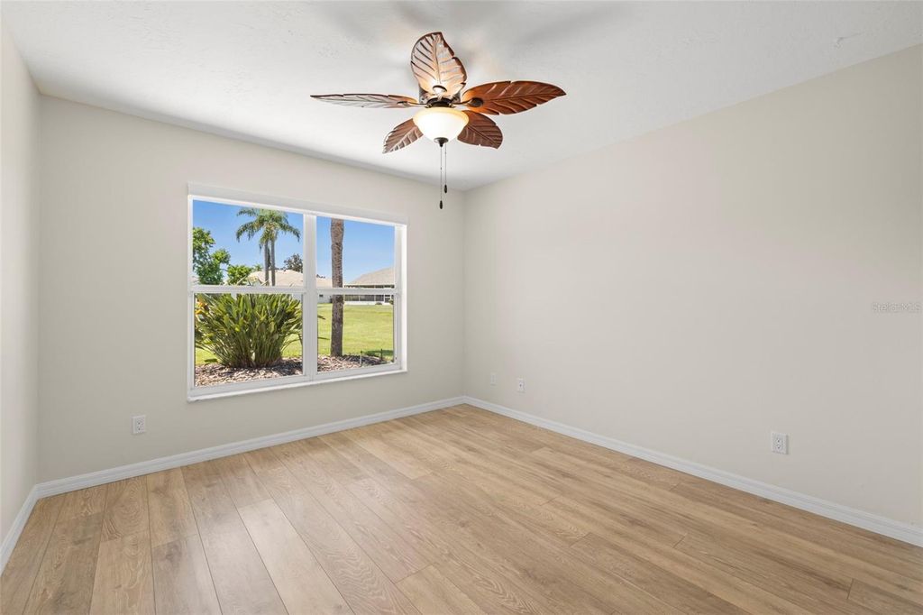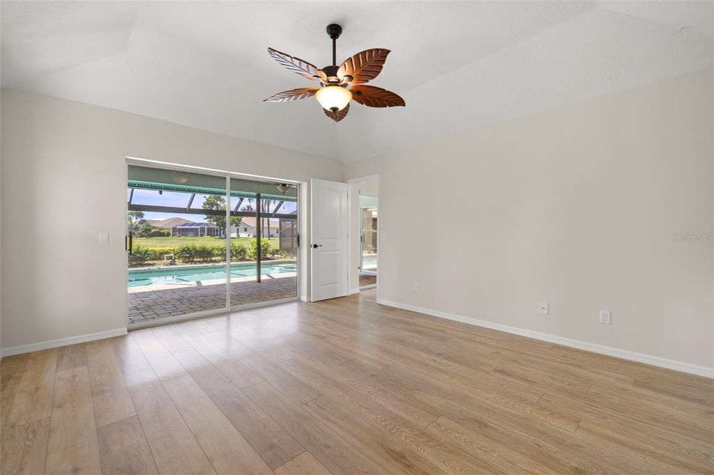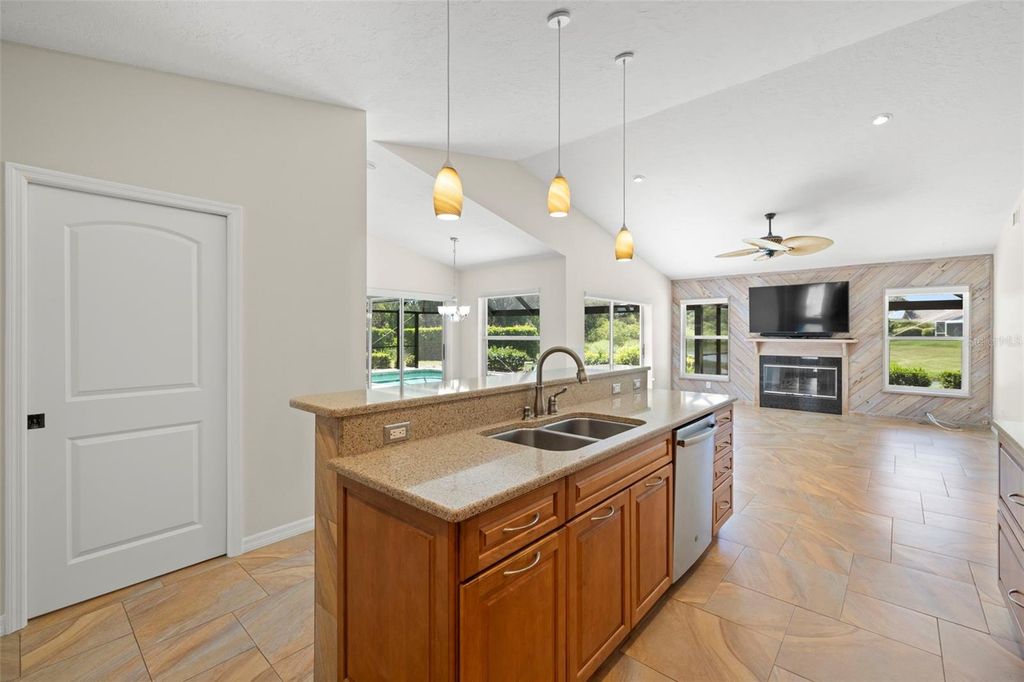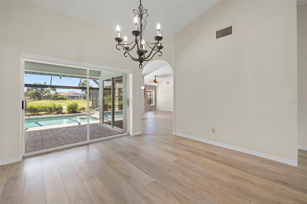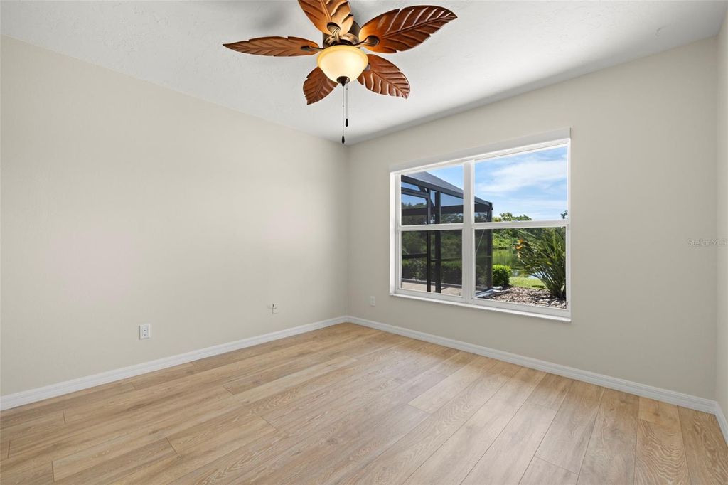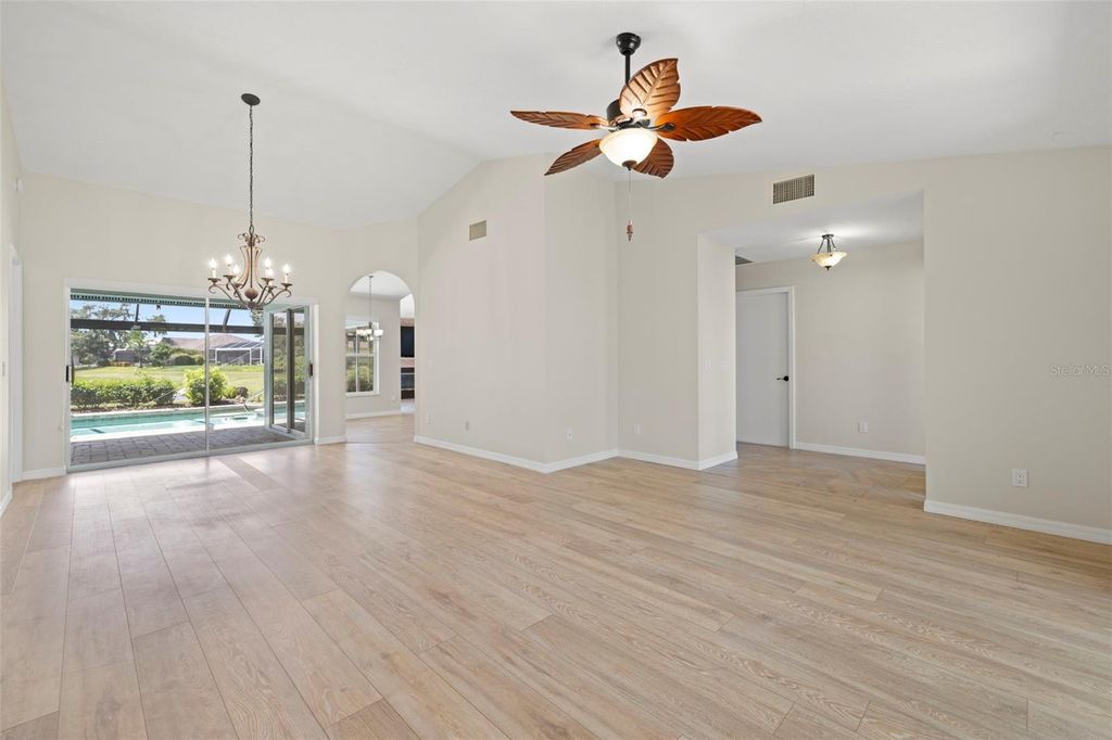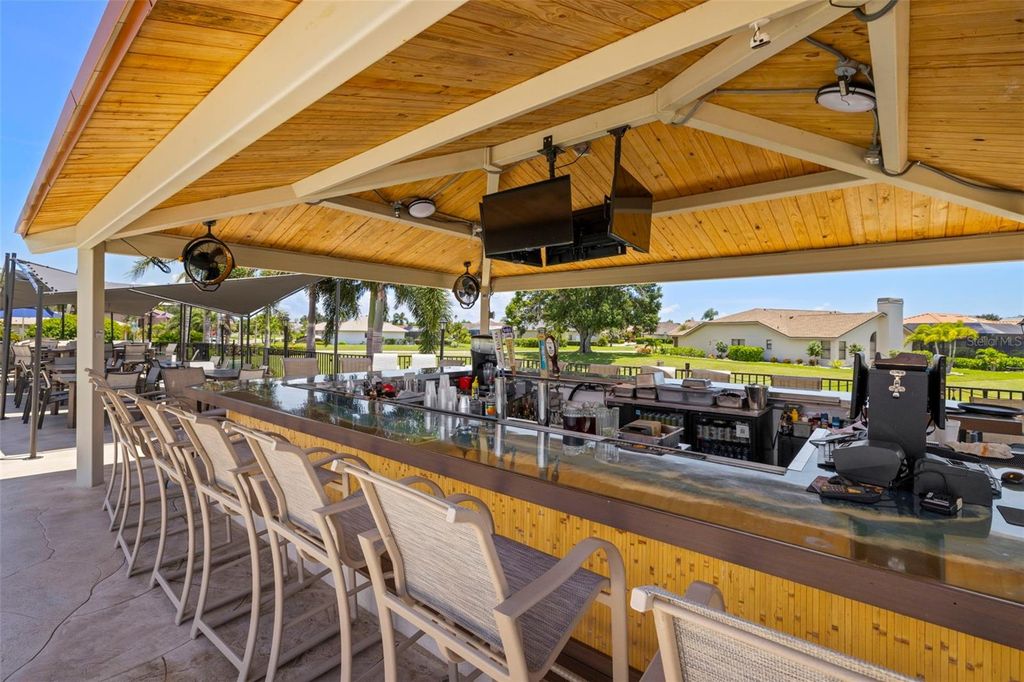 Under contract-accepting backup offers. Welcome to Peridia Golf & Country Club – where every homeowner is a golf club member! Enjoy a lifestyle filled with activities and amenities, including an 18-hole golf course, tennis and pickleball courts, an outdoor Tiki Bar, and the indoor Club Bar & Restaurant. The community also offers a variety of social clubs and events—Mah Jongg, Bingo, Bridge, and so much more. This beautiful 3-bedroom, 2-bathroom pool home is perfectly situated at the quiet southern end of the community on a peaceful cul-de-sac, boasting one of the best water views around. Step inside to discover: An amazing kitchen with new appliances. A breakfast nook where you can enjoy your morning coffee looking out over the pool and lake. Check out the brand new lanai cage with panoramic screens. A new roof was put on in 2025 for peace of mind. See the completely renovated primary bathroom featuring two separate vanities, a walk-in shower, a standalone soaking tub, and a skylight that floods the space with natural light. The split-bedroom design promotes ultimate privacy. The high ceilings enhance the feeling of openness. Out back, your western-facing water view sets the stage for unforgettable sunsets—every single day. Move in and start enjoying the resort lifestyle you deserve—sunsets included!