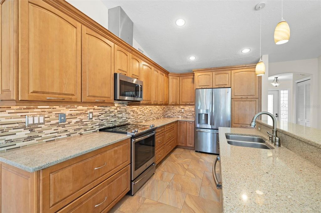 • Interior Features: Coffered Ceiling(s), Eat-in Kitchen, High Ceilings, Stone Counters, Walk-In Closet(s)