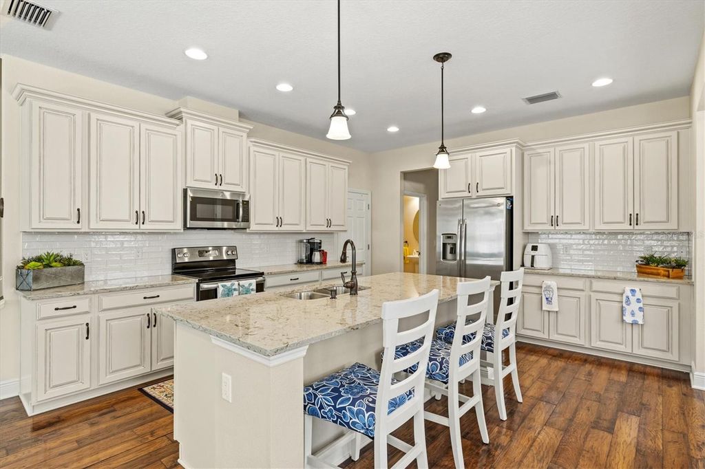 STUNNING 3-BEDROOM TOWNHOME in Gated Creekwood Community Discover COMFORT, STYLE, and VALUE in this beautifully maintained Devonshire II model by M/I Homes. This 3-bedroom, 2.5-bath townhome includes a SPACIOUS BONUS/MEDIA ROOM and an ATTACHED 2-CAR GARAGE, all in a PRIME LOCATION just off SR-70 and I-75 in the heart of Bradenton—minutes to Lakewood Ranch, shopping, dining, and medical facilities. The OPEN-CONCEPT GREAT ROOM impresses with SOARING CEILINGS, abundant recessed lighting, and rich engineered hardwood floors. The CHEF-INSPIRED KITCHEN is a showstopper, featuring ANTIQUE CREAM CABINETRY, CAMBRIA QUARTZ COUNTERTOPS, PULL-OUT DRAWERS, and a GENEROUS CENTER ISLAND perfect for entertaining. Upstairs you’ll find three spacious bedrooms—each with its own WALK-IN CLOSET—plus a VERSATILE BONUS ROOM ideal for a home office, playroom, or media space. Plush, well-maintained carpeting adds warmth and comfort throughout the upper level. Additional Features Include: FULL LAUNDRY ROOM with built-in cabinetry and wash basin OVERSIZED PANTRY and convenient half bath on main floor EV CHARGING STATION in the garage NEWER (2023) TRANE 3-TON A/C WITH HEAT PUMP BEAUTIFULLY REPAINTED INTERIOR LOW HOA ($270) and NO CDD FEES Located in the GATED CREEKWOOD TOWNHOMES COMMUNITY, residents enjoy sidewalks, a RESORT-STYLE POOL, and easy commuting via I-75. This MOVE-IN READY home offers EXCEPTIONAL VALUE in one of Bradenton’s most convenient and desirable locations. Don’t miss this opportunity!